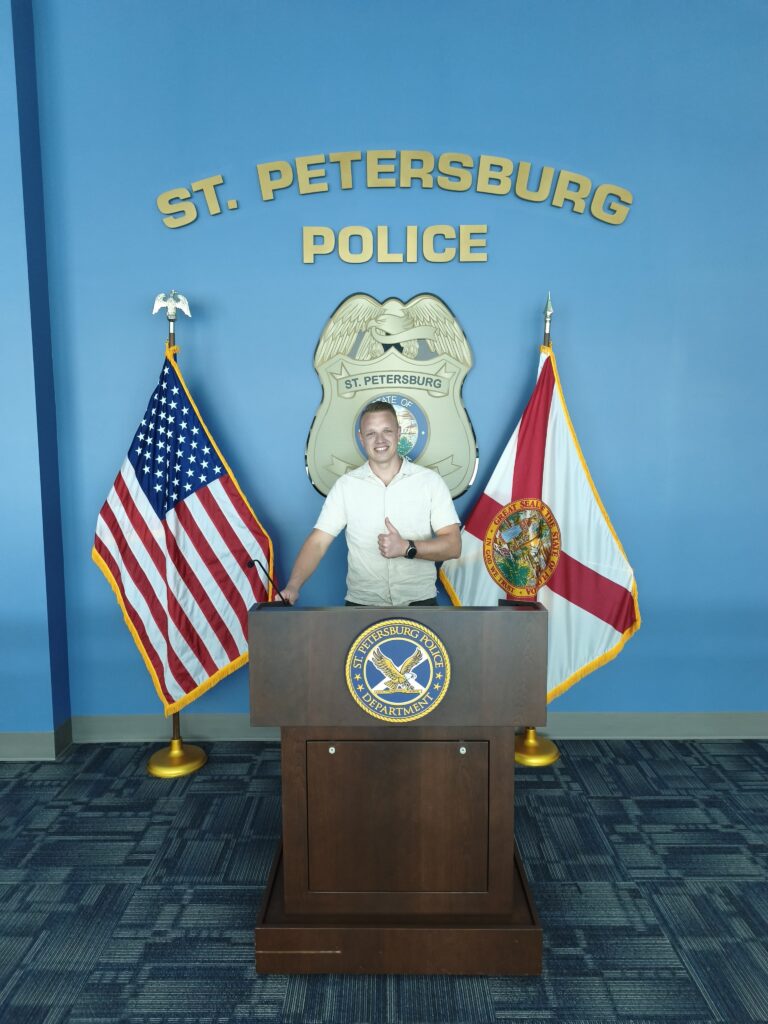 Kurz nach Weihnachten war Alexander (PD-DD) auf Familienbesuch in Florida unterwegs. Einen Tag wollte er doch mal das polizeiliche Leben in Tampa Bay oder im Umfeld kennenlernen und so bat er uns Kontakt mit den Kollegen vor Ort aufzunehmen. Auch bei kurzfristigeren Anfragen tun wir natürlich alles dafür, dass ein fachlicher Austausch zustande kommt. Jim Rexroad, der für die IPA Region 19 in Florida aktiv ist, antwortete uns sehr zeitnah und organisierte ein Tagesprogramm für Alexander. Die IPA Dresden bedankt sich auch an dieser Stelle nochmals für Jim’s schnelle Antwort und dass das Treffen zudem noch zwischen Weihnachten und Neujahr möglich gemacht werden konnte.