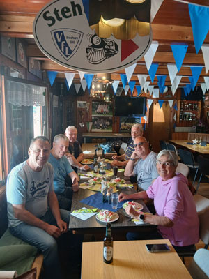 Besonders interessant war die Rückfahrt nach Bochum über Leithe, Günnigfeld, Stahlhausen, West, Kortumpark und Lohbrücke. Wir durften als einer der ersten Radfahrer den 7 Kilometer langen Streckenabschnitt des RS1(Radschnellweg) befahren, der in Stahlhausen endete. Eine echte Fahrradautobahn. Es war meine Absicht immer sehr ruhige Strecken zu befahren. Parkwege waren dabei, Nebenstraßen, aber zu 80 Prozent Radwege. So kamen wir nach 52 Kilometern sicher in unserem Vereinheim an. Bier, Schnitzel, Pommes und Salat war die Belohnung für eine recht lange Tour.