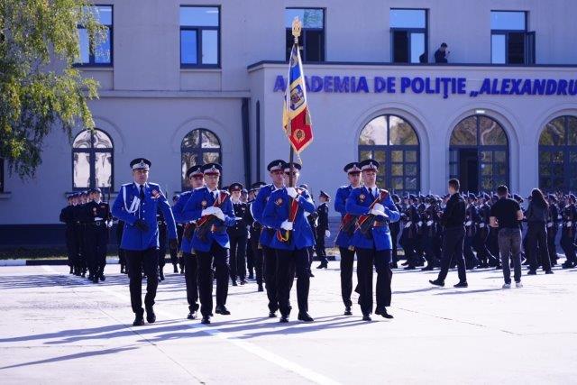 Den programmatischen Auftakt bildete die Teilnahme an der feierlichen Vereidigung des neuen Studienjahrgangs der rumänischen Polizeiakademie „Alexandru Ioan Cuza“. In einer eindrucksvollen Parade präsentierten sich Studierende aller Dienstzweige – ein Ereignis, das deutlich die militärische Tradition der rumänischen Polizei erkennen ließ. Die deutschen Gäste durften der Zeremonie unmittelbar neben der Ehrentribüne beiwohnen und wurden sogar vom Innenminister Rumäniens persönlich mit Handschlag begrüßt. Im Anschluss an den Festakt stellten sich die verschiedenen Departments der Akademie vor und gaben Einblicke in die verschiedenen Studien- und Ausbildungsgänge. Beim Vergleich der Trainings-, Aus- und Fortbildungsstrukturen zeigten sich sowohl interessante Unterschiede als auch viele Gemeinsamkeiten.