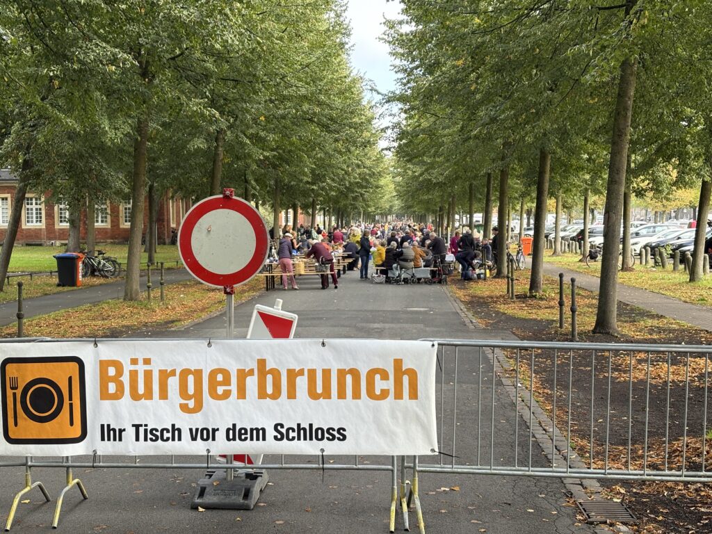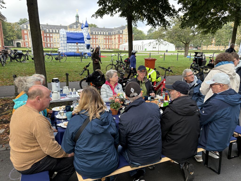 Wenn man am Sonntagmorgen sich vor dem Schloß trifft, dann erwartet einen ein durchaus leckeres Frühstück mit frischem Obst und der Tageszeitung vom Wochenende. So ist es auch dieses Jahr wieder gewesen, wobei die wahren Leckereien mitgebracht worden sind. Mit 16 Personen (ja, alle Plätze waren voll) saßen wir dann in gemütlicher Runde und lachten, speisten und schwatzten.