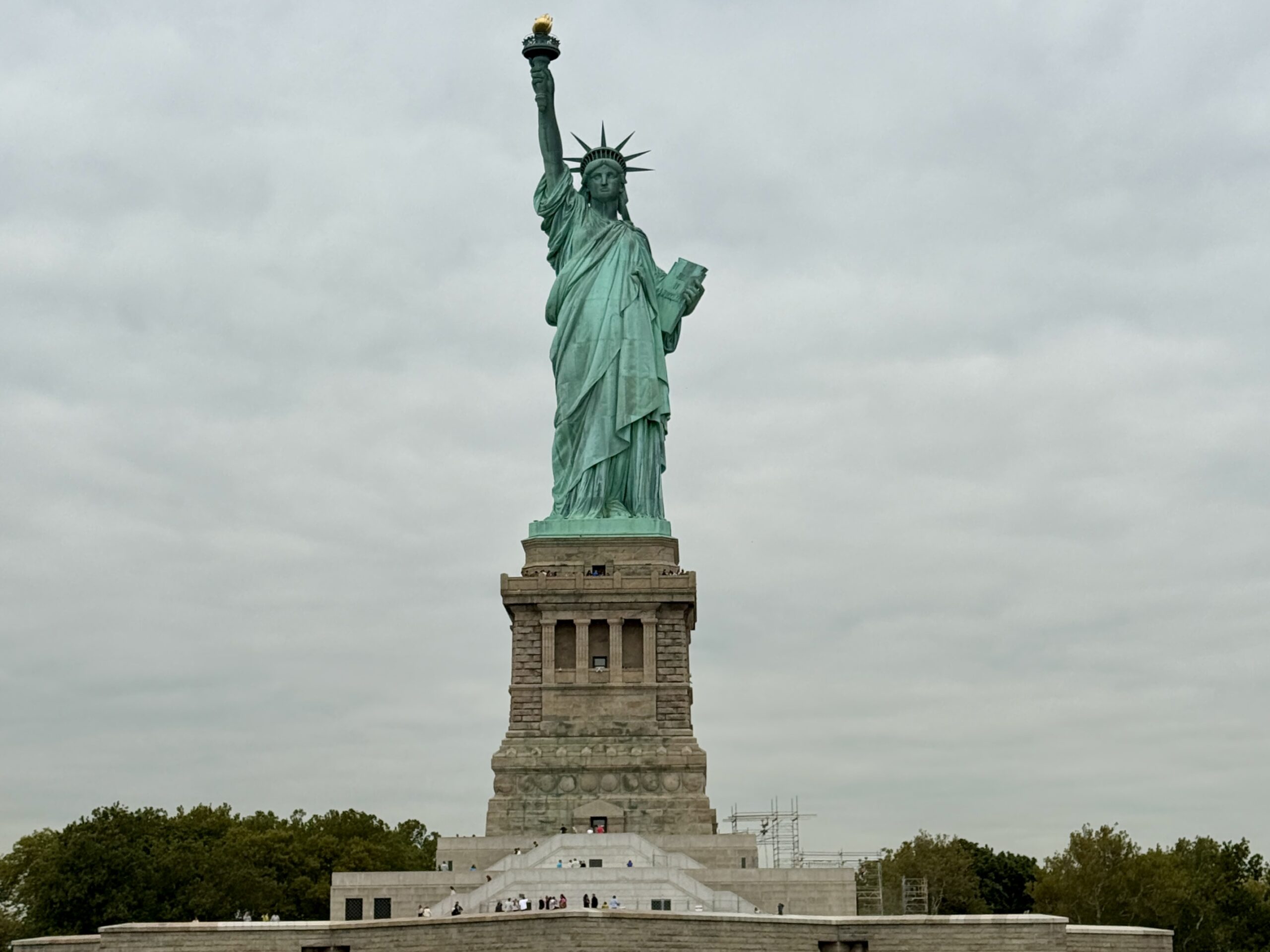 Die Bootstour startete pünktlich bei ausnahmsweise bewölktem Himmel und angenehmen 24 Grad. Vom North Cove Yacht Harbor aus fuhren wir mit einem Polizeiboot über den Hudson River, um Manhattans Südspitze herum in den East River und genossen den Blick auf die Skyline und die berühmten Brookyn- und Manhattan-Bridges. Dabei passierten wir auch den Heliport, auf dem am Abend Präsident Trump zur UN-Vollversammlung landen sollte. Weiter ging es zur Freiheitsstatue, wo wir vor Liberty Island einen Stopp für Fotos und spannende Geschichten der begleitenden Kollegen einlegten.