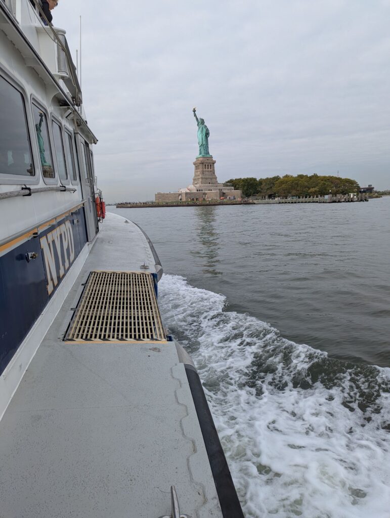 Am Montag folgte ein weiterer Stadtrundgang, bevor wir noch ein besonderes Highlight erleben durften: eine Fahrt mit einem Schiff der NYPD. Dabei bot sich uns ein beeindruckender Blick auf die Brooklyn Bridge, die Freiheitsstatue und die Skyline von Manhattan.