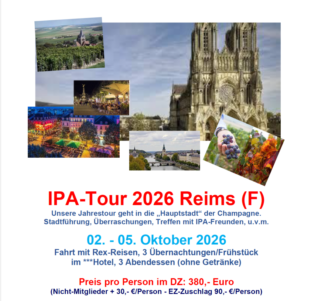Die Anmeldung, die per E-Mail oder bei jedem Vorstandsmitglied möglich ist, wird erst gültig mit Eingang der Anzahlung von 100,- € auf dem Konto der Verbindungsstelle (Details dazu per Email an vorstand@ipa-heinsberg.de) zum Verwendungszweck „Tour 2026, Name/n der Teilnehmer“.