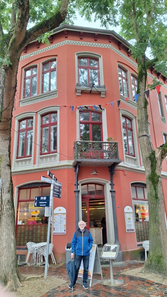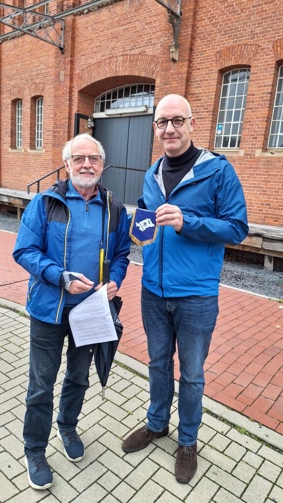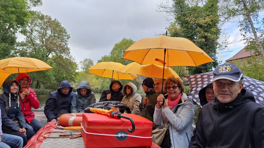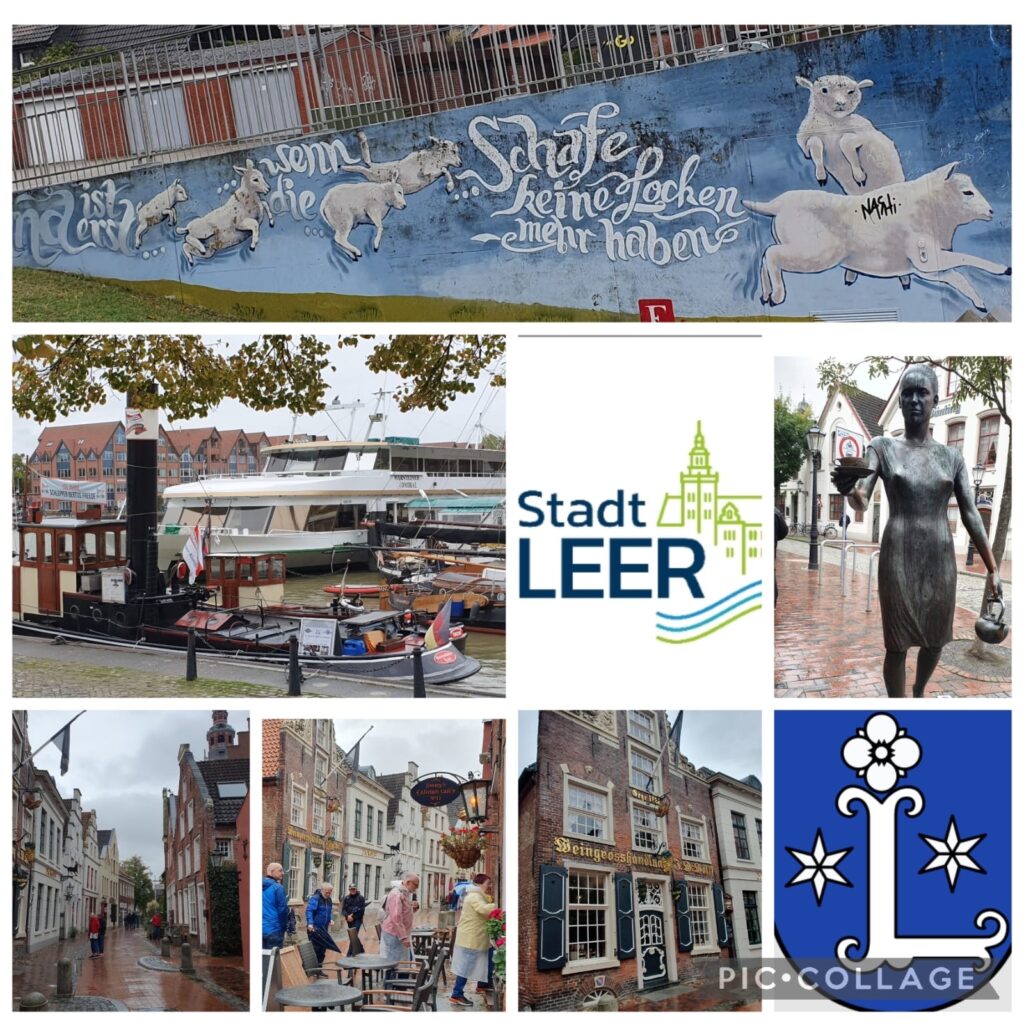 Nach der Mittagspause fuhren wir nach Leer. Hier lernten wir den Verbindungstellenleiter Thorsten Lünemann kennen. Er hatte uns eine Ausflugs- und Entdeckerroute ausgearbeitet: durch die Fußgängerzone zum Antik Café, weiter zur Altstadt mit dem historischen Rathaus bis zum Museumshafen. Leider regnete es dort fast die ganze Zeit, sodass wir uns unsere Zeit bei Essen und Trinken in verschiedenen Lokalen etwas anders gestalten mussten als ursprünglich geplant. Das tat der guten Laune, die wir hatten, aber keinen Abbruch.