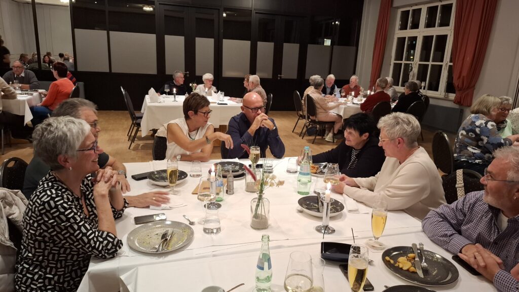Danach fuhren wir zum Hotel nach Emden und waren sehr überrascht über die schönen Räume und den freundlichen Empfang. Unsere Gruppe hatte an allen Tagen einen eigenen Raum zum Essen, was zu jeder Zeit hervorragend und sehr schmackhaft war. Am Abend gesellten sich IPA-Freunde aus Emden dazu. IPA-Verbindungsstellenleiter Rolf Nordmann, seine Frau und zwei weitere Kollegen wurden herzlich aufgenommen