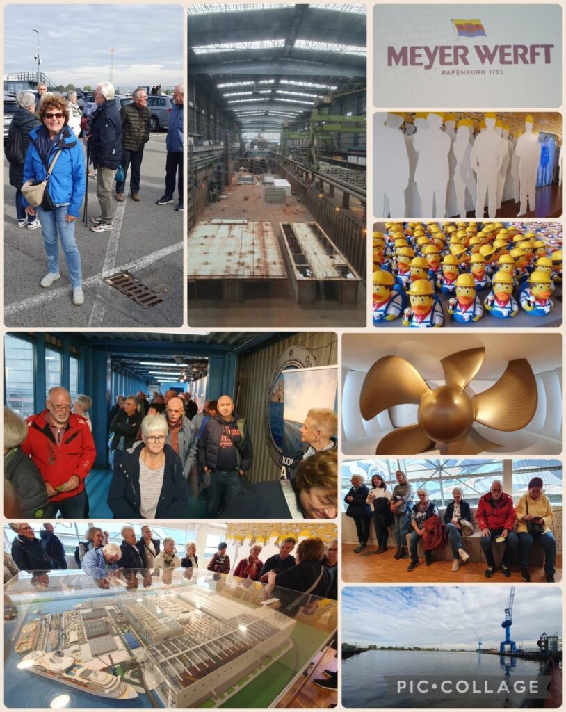 Pünktlich fanden sich die Reiseteilnehmer zur diesjährigen IPA-Tour nach Emden an der Polizeidienststelle in Heinsberg ein. Zügig ging es durchs Ruhrgebiet und nach einer kleinen Rast mit Kaffee und Brötchen, was uns unser Busfahrer Josef kredenzte, kamen wir gegen 13.00 Uhr in Papenburg bei der Meyer Werft an, unserem ersten Ausflugsziel. Eine sehr kompetente Führerin zeigte uns anhand von zwei Filmen viel Interessantes über die Meyer Werft und deren Geschichte: Die Werft ist an dieser Stelle seit 1795. Weitere Meyer Werften gibt es in Rostock und Finnland. 3800 Menschen arbeiten dort, mit Subunternehmen zeitweise etwa 8000. Das Firmengelände hat mit 50ha eine beachtliche Größe. Spannend waren auch die Fotos und Modelle von Schiffen, die in der Werft gebaut wurden, bis hin zu den Zukunftsvisionen mit Schiffen für 13.000 Passagieren. Die Halle des Trockendocks, wo heute die Schiffe bebaut werden, war beeindruckend und hatte eine unfassbare, aber notwendige Größe. Eine tolle Führung.