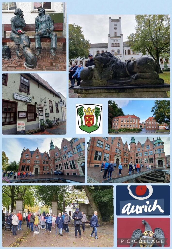 Am 3. Tag ging es nach dem Frühstück nach Aurich. Der dortige Verbindungsstellenleiter Jakobus Dannholz zeigte uns „seine“ Stadt: das Auricher Schloss, wo jetzt das Niedersächsische Landesamt für Bezüge und Versorgung untergebracht ist, den Marstall, die Altstadt und den Hafen. Wir fanden: Aurich ist eine Reise wert.