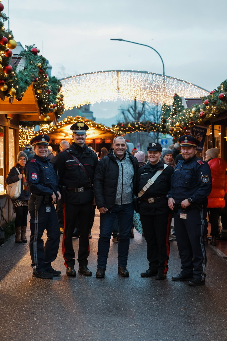 Anlässlich eines Skiausflugs mit Freunden, besuchte Tom Krause den Weihnachtsmarkt in Innsbruck, da an diesem Tag die Sichtbedingungen auf dem Stubaier Gletscher eher schlecht waren. Er nutzte die Gelegenheit, eine gemischte Streife von Kolleginnen und Kollegen aus Österreich und Italien anzusprechen und nett mit ihnen über ihre Tätigkeit und über die IPA zu plaudern. Die jungen Kollegen zeigten sich sehr interessiert und vom Polizeifotografen, der die Streif begleitete, wurde ein gemeinsames Erinnerungsfoto gefertigt. Mit den besten Wünschen für die Zukunft verabschiedete man sich! Bleibt immer schön gesund und passt auf Euch auf, liebe Kollegen!