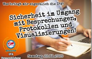 Einladung zu unserer zweiten Veranstaltung am 22.11.2025 zum Thema „Visualisierung in Besprechungen nutzen“ Liebe IPA-Freundinnen und -Freunde, liebe Kolleginnen und Kollegen der Verbindungsstellen in Hessen