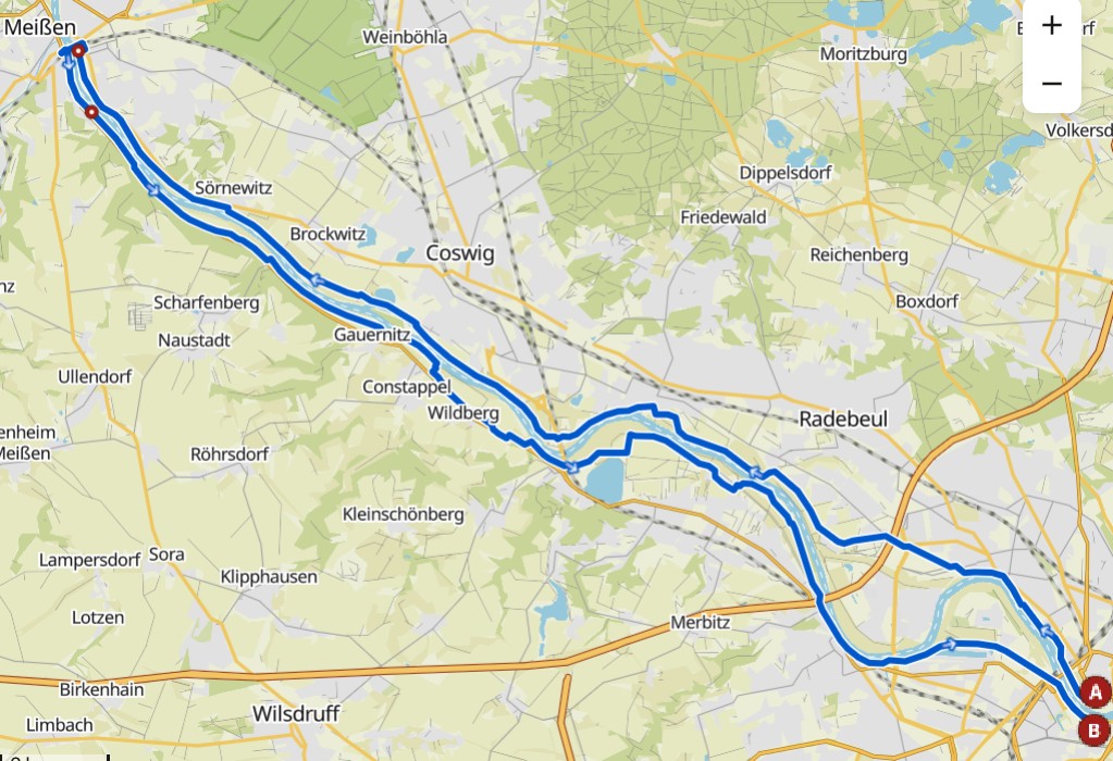 Nach entspannten knapp 25 km kommen wir dann zwischen 15:30 und 16:00 Uhr in Meißen an, möglicher Zwischenstopp in der Beachbar 🙂
