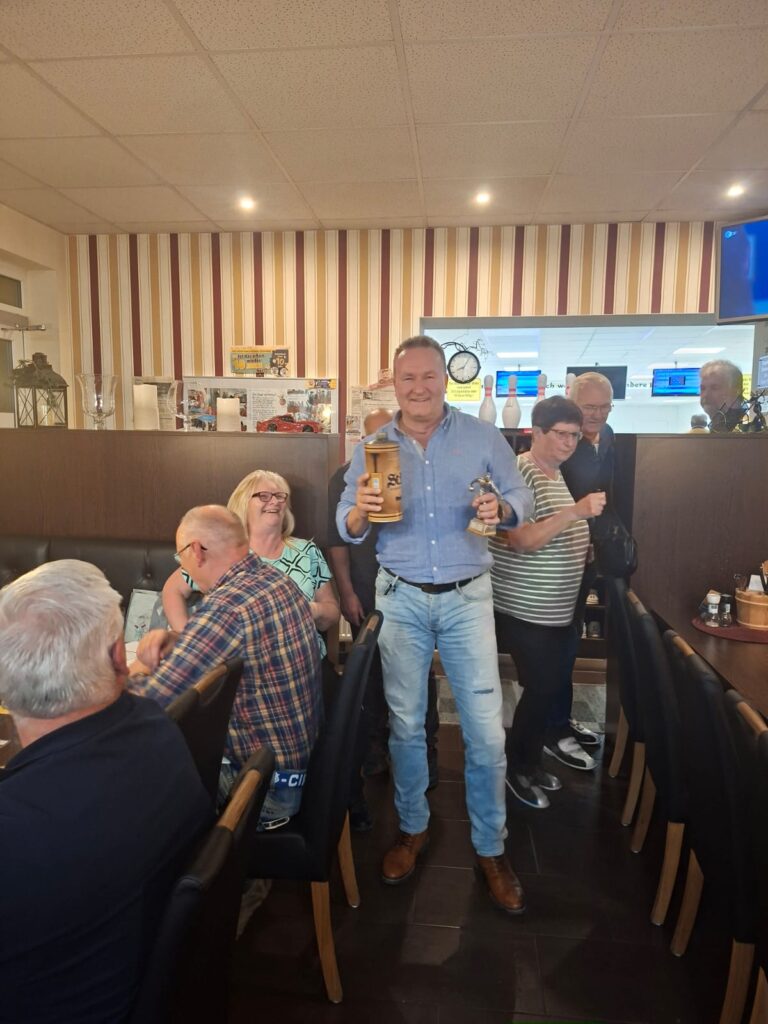 Auf allen Bahnen wurde ordentlich um Höchstleistungen gekämpft. Leider lief es in diesem Jahr für den zweifachen Champion nicht so erfolgreich und er belegte nur den 7. Platz. Mit überirdischer Unterstützung auf Bahn 3 (Pins sind nicht aufgestellt und wurden teils als Strike gewertet 😉) und einem besseren Händchen belegte unser Vorzeigesportler Mirko Pest den 1. Platz. Auf Platz 2 kam IPA-Freund André Schäfer und die Bronzemedaille ging an Manuela Dinter-Berger. Medaillen wurden aber nicht verliehen. Stattdessen erhielt jeder Platzierte eine besondere Dose (2 Liter) mit leckerem heimischen Gerstensaft der Eibauer Brauerei. Nach einem gewohnt sehr guten Abendessen und der anschließenden Siegerehrung fand der Abend ein schönes Ende.