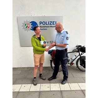 Am 14.09.2025 besuchte er das Polizeipräsidium Aachen. Mit freundlicher und unkomplizierter Unterstützung der PW Ost (PHK Jahn), der Leitstelle (EPHK Baum, PHK Volling), des PGD und der K-Wache (KHK Kirch) (herzlichen Dank dafür) erhielt Alex einen Eindruck von der Arbeit. Alex wurde die Vielfältigkeit der Arbeitsaufgaben der Polizei in Deutschland und den speziellen Aufgaben im Grenzbereich mit den Niederlanden und Belgien vorgestellt.