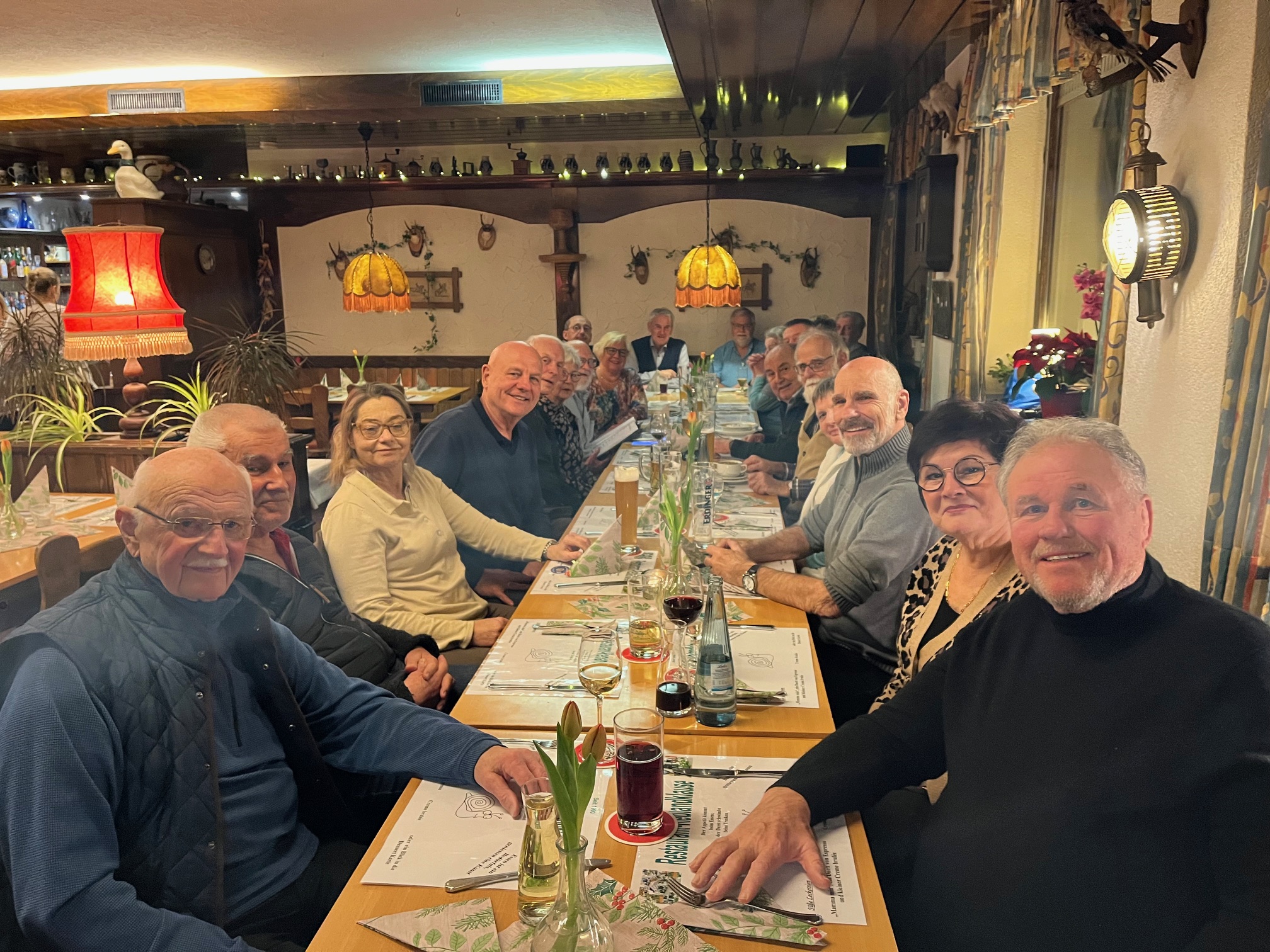 Nach einer zeitlichen Unterbrechung haben wir das über viele Jahre bei „Lotte“ im „Bahnhöfle“ in Staufen zelebrierte Wildessen wieder aufgenommen. Nachdem Lotte vor Jahren gestorben ist und ihr Enkel das Lokal unter anderen Voraussetzungen weiterführt, haben wir nun in der „Reblandklause“ in Pfaffenweiler, in der wir schon zweimal zur Schlachtplatte waren, eine neue „Heimat“ für unser traditionelles Wildessen gefunden.