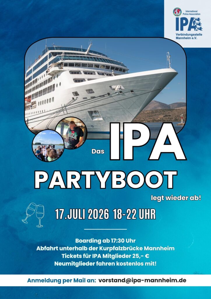 Die IPA Mannheim lädt euch herzlich zum 8. IPA-Partyboot ein!