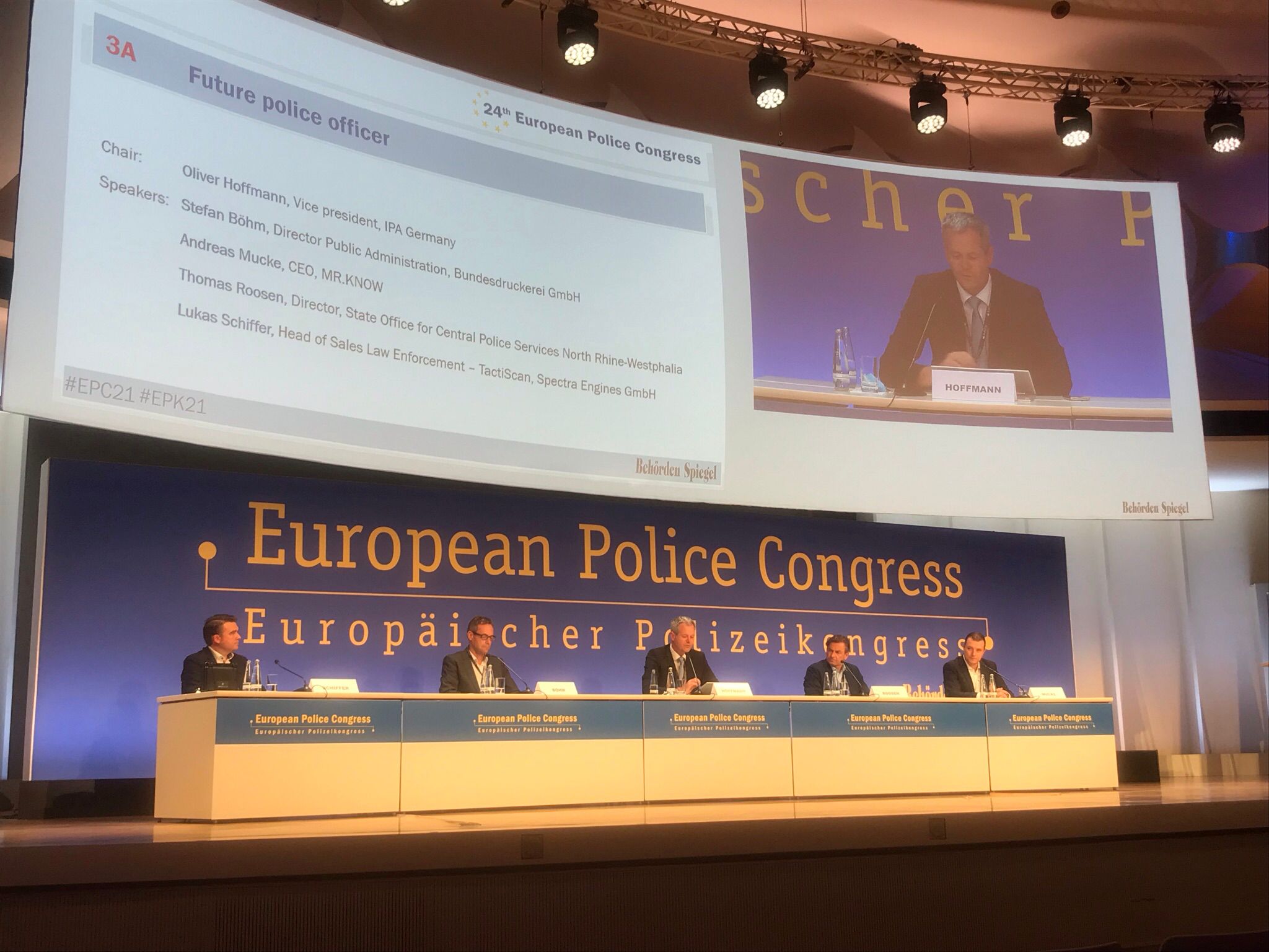 „Der Europäische Polizeikongress ist ein internationaler Kongress für Entscheidungsträger von Polizei, Sicherheitsbehörden und Industrie. Ziel ist es, den Dialog zwischen den Behörden zu stärken und den Teilnehmern neue Kontakte zu Kollegen aus der ganzen Welt zu ermöglichen“, so der Veranstalter auf der Internetseite.