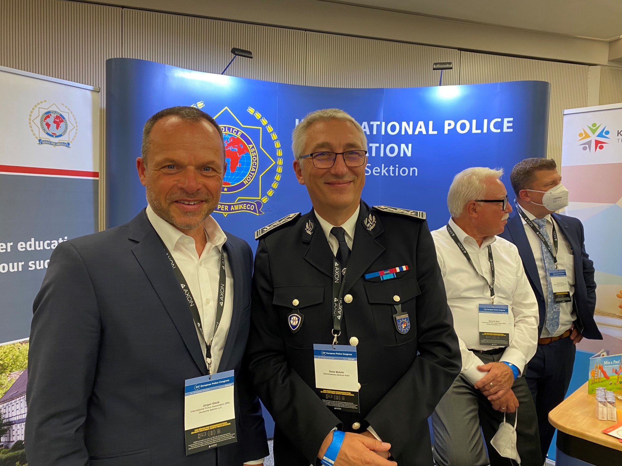 Neben unserem gemeinsamen Informationsstand mit dem IBZ Schloss Gimborn und unserem Bündnispartner Kinderschutzallianz beteiligten wir uns auch aktiv am Kongressgeschehen. May-Britt Ronnebro, internationale Generalsekretärin der IPA diskutierte im Hauptprogramm zum Thema Polizeiarbeit in und nach der Krise. Unser Vizepräsident Oliver Hoffmann moderierte am zweiten Tag das Fachforum „Der Polizist der Zukunft“. Als Speaker waren auf dem Podium Herr Muck mit der Software Mr. Know, Herr Böhm von der Bundesdruckerei, der Direktor des Landesamts für Zentrale Polizeiliche Dienste NRW, Herr Roosen sowie Herr Schiffer von der Firma Spectral Engines. Hoffmann schloss das Forum mit der Erkenntnis, dass es „in der nahen Zukunft keinen Robocop geben wird, aber einen Polizisten der seine Prozesse optimiert, mutig auf Innovationen reagiert, seine Datenbanken soweit als möglich vernetzt und neuen Produkte nutzt die auf dem Markt erscheinen“.
