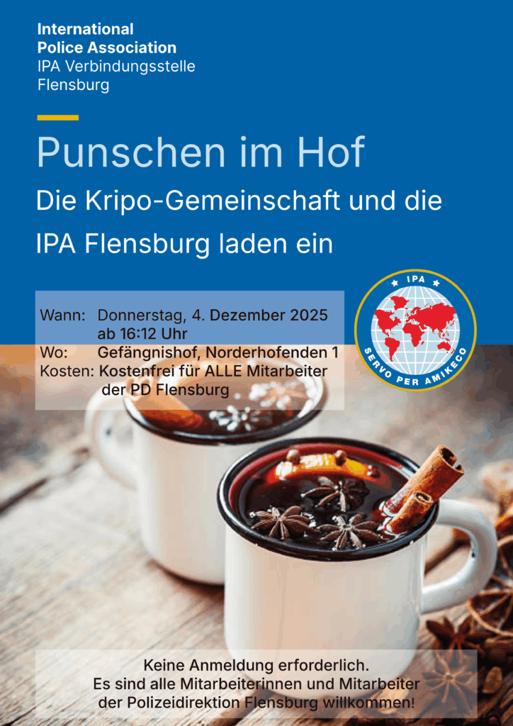 die Kripo-Gemeinschaft und die IPA Flensburg laden euch herzlich zum gemeinsamen Punschen im Hof ein!